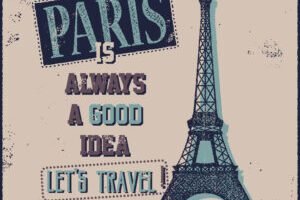 Vintage Touristic Greeting Card – Paris France. Vector illustration.