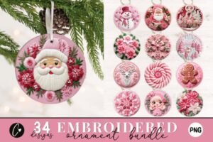 Adornos navideños rosas estilo bordado para camisetas – Descarga gratis