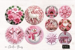 Su estética en tonos rosados, dorados y blancos navideños los hace perfectos para emprendimientos de personalización.