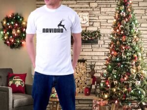 Elegante y Sofisticado: Si prefieres un enfoque más elegante, opta por camisetas en colores sólidos como el rojo, verde o dorado, con diseños sutiles y minimalistas que reflejen la sofisticación de la temporada.