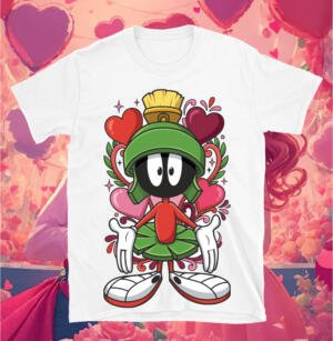 Las caricaturas permiten exagerar expresiones, añadir gestos románticos y crear composiciones originales que destacan visualmente en una camiseta. Desde parejas animadas con corazones hasta personajes divertidos sosteniendo carteles de amor, las posibilidades son amplias. Además, este estilo suele funcionar muy bien tanto en camisetas para parejas jóvenes como en diseños personalizados para amigos o incluso para quienes celebran San Valentín de forma divertida.