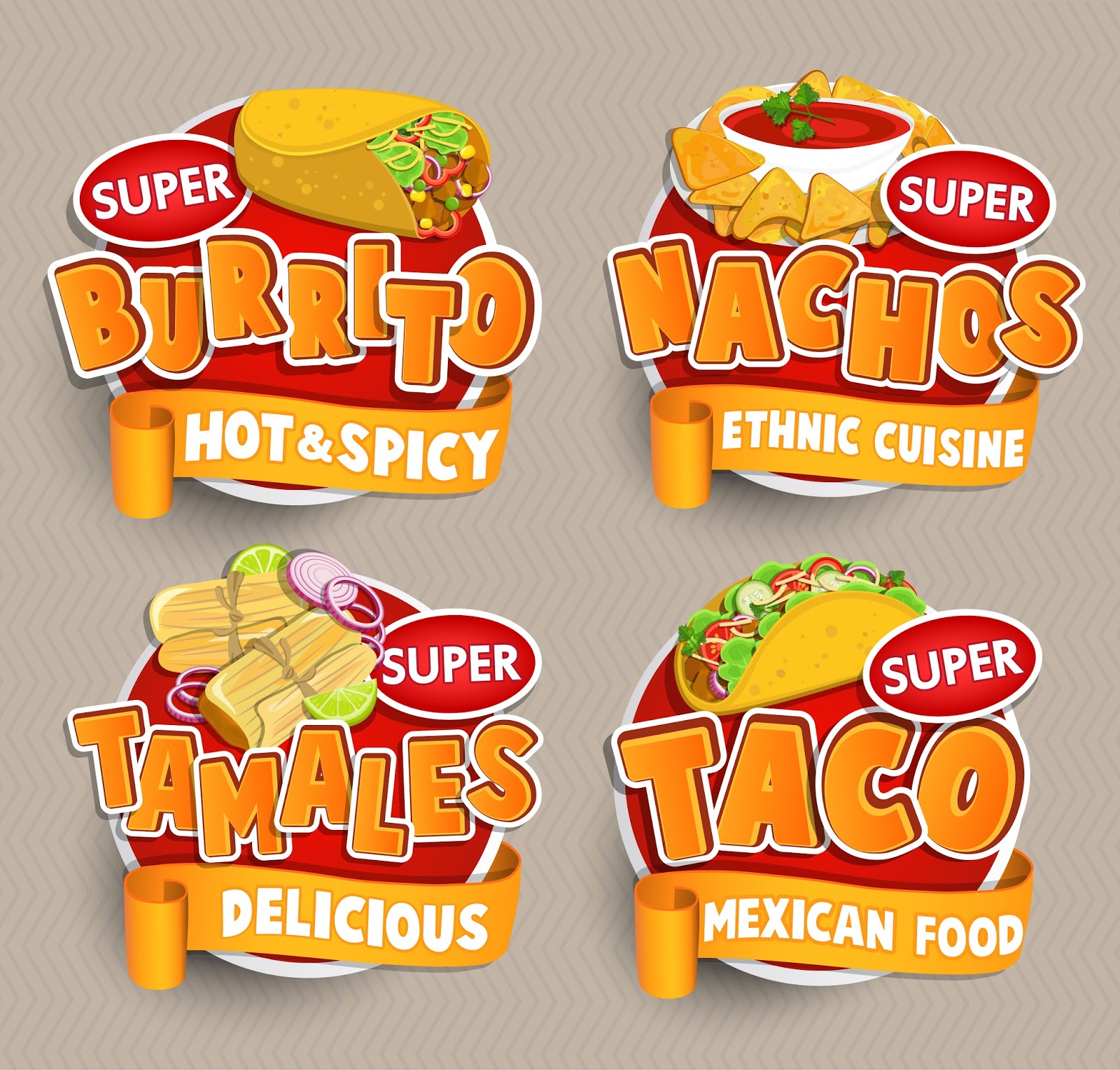 Muchas veces nos hemos visto limitados por conseguir este tipo de diseños para nuestros proyectos y mas cuando se trata de temáticas de comida. Bueno por eso aquí le dejo estos diseños de mexican food para que no se quiebren mucho la cabeza a la hora de mostrar un proyecto a alguno de sus clientes. Recuerden que pueden mezclarlos entre si para obtener resultados muy diferentes a los que ya están en pantalla. Espero les sea de gran ayuda.